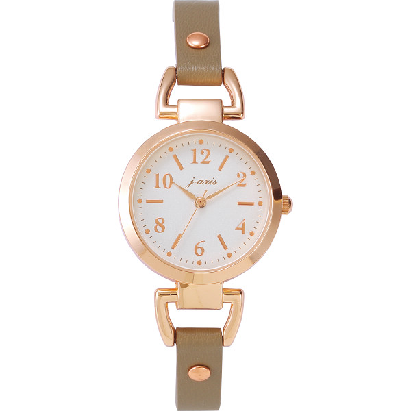 抜け感のあるデザインと落ち着いたカラーのベルトが印象的なリストウォッチ