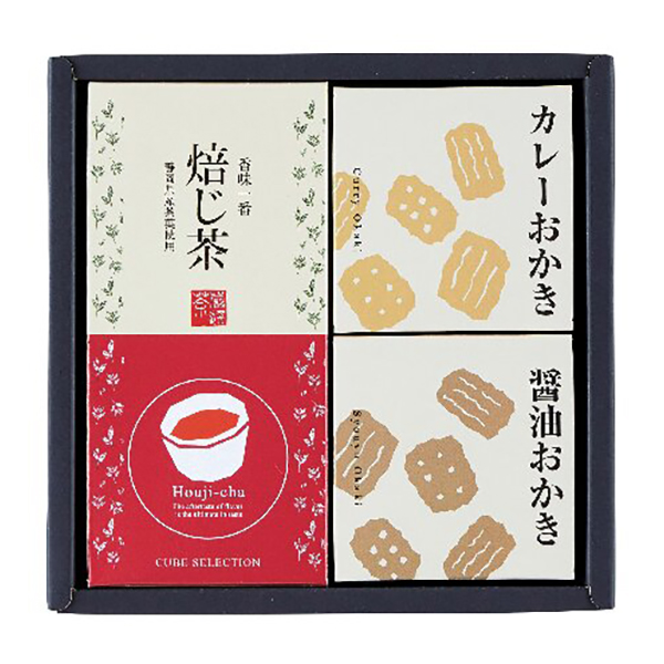 静岡のお茶に合わせてたまり醤油とカレー味のなつかしいおかきを詰合わせました。