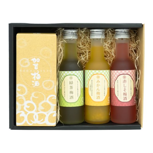 梅酒好きの方へ贈りたい!飲み比べワクワクセット♪全国梅酒品評会で金賞受賞の実績もある「てまりシリーズ(赤しそ・みかん・緑茶の3種)」は1本180mlの丁度いい飲みきりサイズ感。また、濃密な梅の旨味とクリアな飲み口をあわせ持つ加賀梅酒はANAのファーストクラスで提供されていた実績もある実力派。シーンを選んで色んな梅酒の味わいをお愉しみください♪