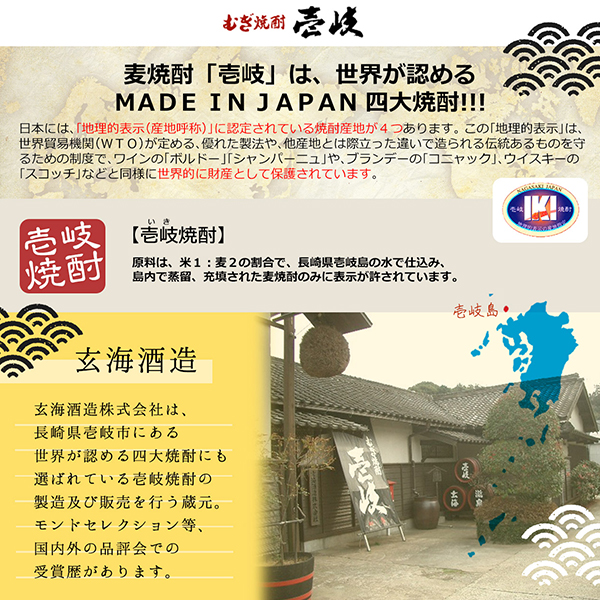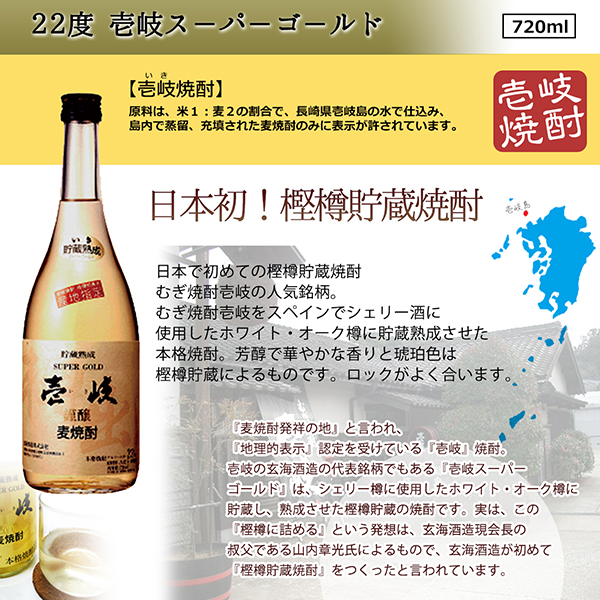 <麦焼酎発祥の地 長崎 壱岐の島を代表する「玄海酒造」の2種詰合せ>日本発のシェリー樽貯蔵のスーパーゴールドと伝統的な造りの定番麦の詰合せセットです。