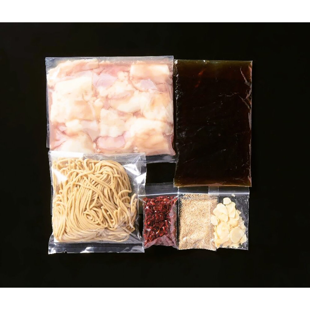 燻製のスモーキーな香りと深い味わい、ぷりぷりの食感の和牛もつを醤油スープが引き締めるもつ鍋セット。ソフトでコシのある生麺ならではのちゃんぽんが締めの満足を引き立てます。