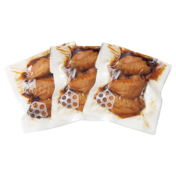 国産若鶏の手羽先を大きな釜でじっくり煮込みました。甘辛い醤油の味付けが手羽先の中まで染み込み、とってもやわらか。少し濃いめの味付けで、ご飯のおかずにピッタリです。