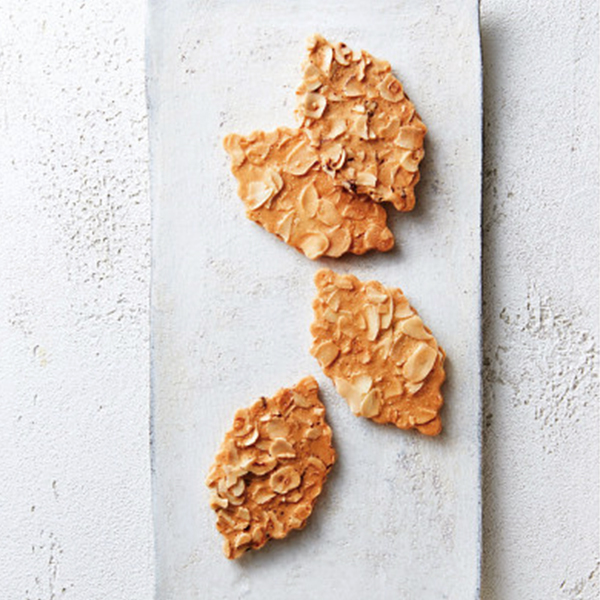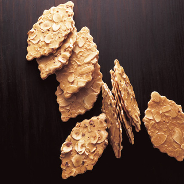 スライスナッツをたっぷりと敷き詰めてパリッと香ばしく焼き上げました。アーモンドとヘーゼルナッツに相性のよいチョコレートを絶妙のバランスでサンドし繊細な食感に仕上げました。