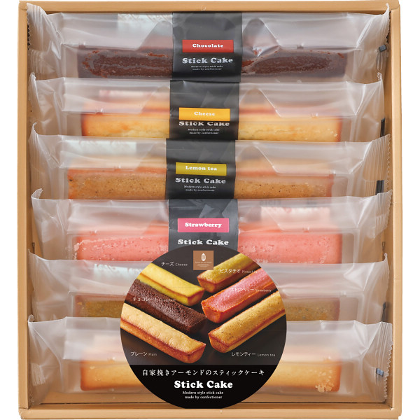 内容:スティックケーキ(プレーン・チョコ・チーズ・レモンティー・ストロベリー・ピスタチオ×各1)