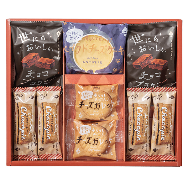 内容:サクサクチョコパイ×4個、ホワイトチョコ入りチーズガレット・世にもおいしいチョコブラウニー×各2個、冷やして食べる!ベイクドチーズケーキ×1個