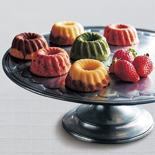 果実風味の生地に、フレーバーやつぶつぶ果実をプラス。ひと口で、ふたつおいしいかわいらしいクグロフです。