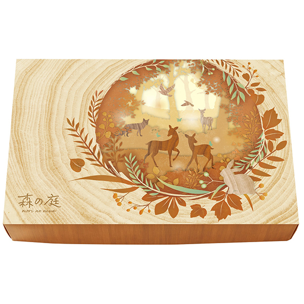 非日常の森の庭で素朴なお菓子を味わう『森の庭』シリーズ。しっとりバームクーヘンにカラメルソースをまとわせ、砂糖をかけてさらに焼き上げた「焦がしキャラメルがしみ込んだバーム」と、「しっとりバームクーヘン」の2種を詰め合わせました。ひと手間かけた味わいをお楽しみください。