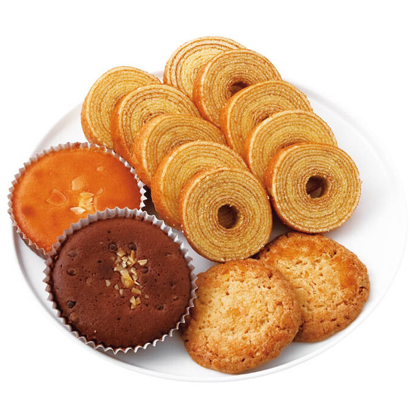 内容:オートミールクッキー×3枚、チーズスティック×2個、ミニバームクーヘン7個入×1袋、マドレーヌ(プレーン)・マドレーヌ(チョコ)×各1個