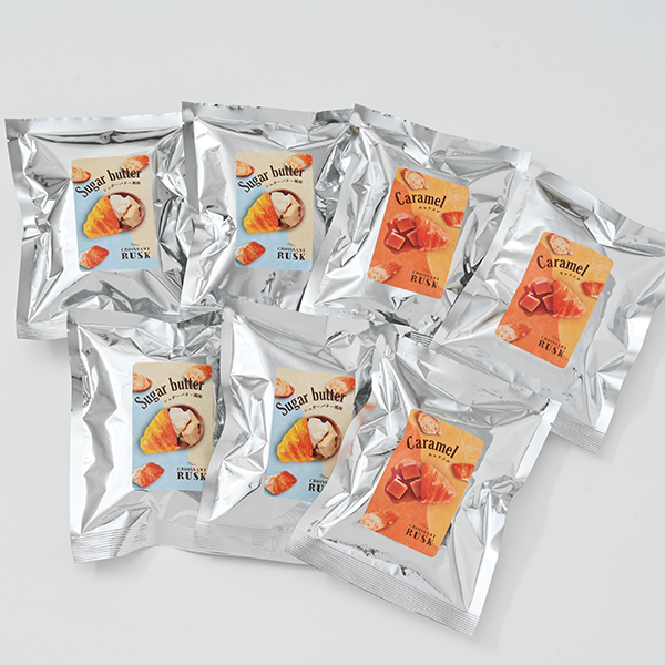 クロワッサンの層を潰さずに生かした独自製法のミニクロワッサンのラスクです。