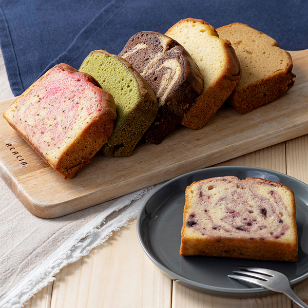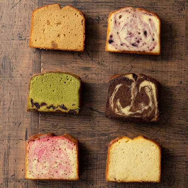 フルーツを混ぜ込んだ大きなしっとりパウンドケーキです。ずっしりとしたサイズ感ですが、ふんわり軽い食感で意外にぺろりと食べられます。朝食代わりやデザートにも。フルーツとフレーバーが組み合わさったそれぞれの味わいをお楽しみください。