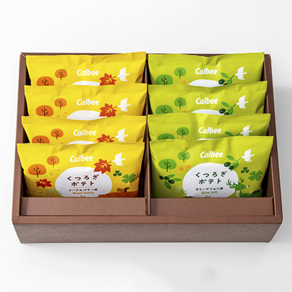 内容:くつろぎポテト(オリーブソルト味16g×4袋、メープルバター味16g×4袋)