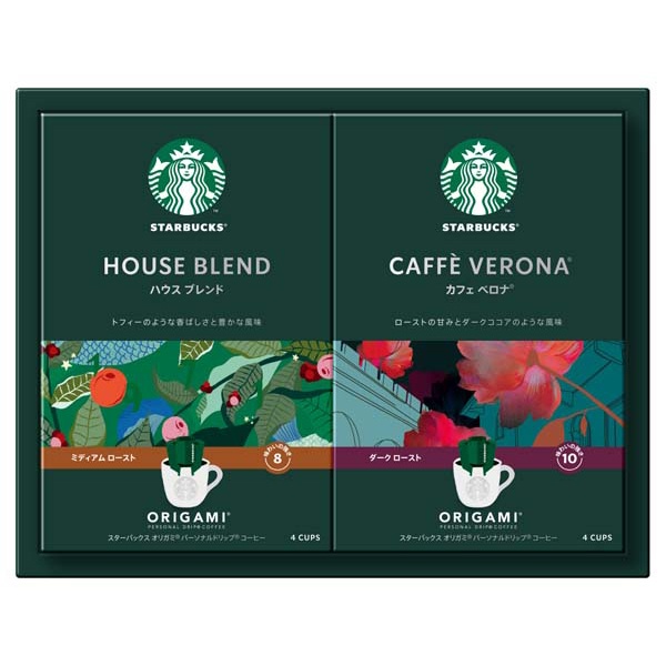 内容:スターバックス オリガミ パーソナルドリップ コーヒー9g×4P×2(ハウスブレンド・カフェベロナ×各1)