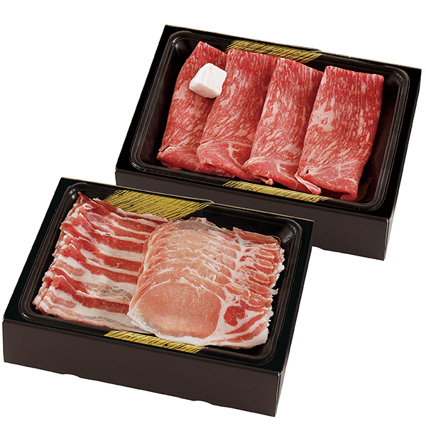宮崎県産黒毛和牛すきやき肉とおいも豚しゃぶしゃぶ肉
