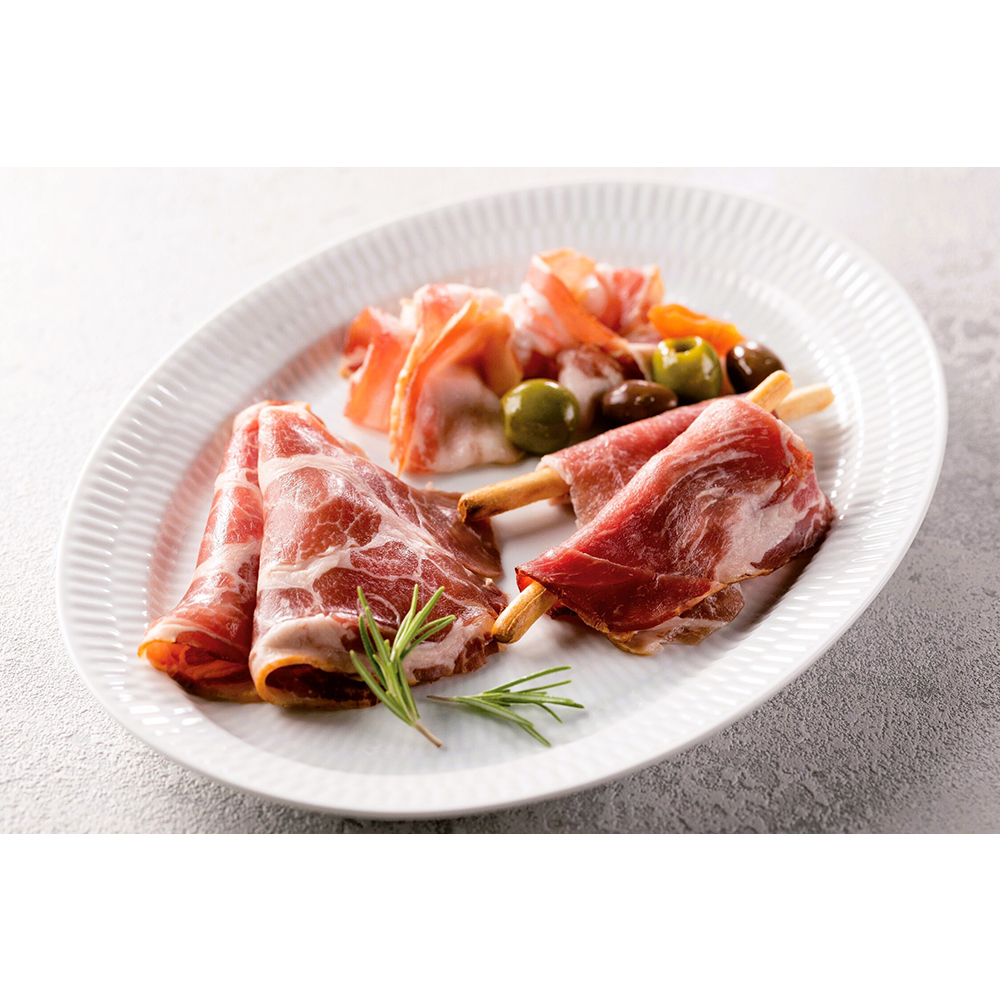 鹿児島県産黒豚の生ハムとパンチェッタのレアなセット。パンチェッタは豚バラ肉を塩漬けし乾燥熟成したもの。塩分を管理し素材の味わいを大切につくられています。