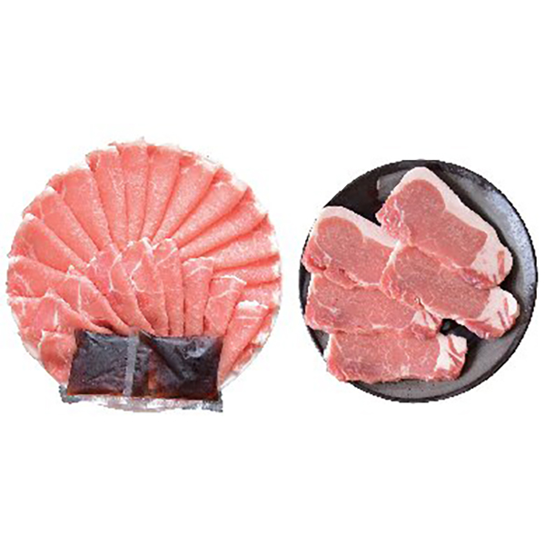 内容:ロース肉(しゃぶしゃぶ用)400g、ゆずポン酢50g×2、ロース肉(とんかつ・ステーキ用)100g×5