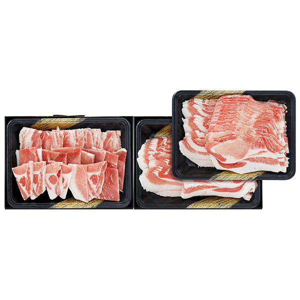内容:[しゃぶしゃぶ肉]ロース肉・ばら肉 各250g×2/計1kg[焼肉]ばら肉・もも肉 各200g、肩ロース肉150g/計550g