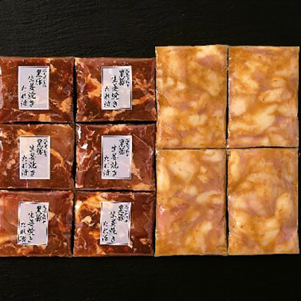 独特の食感をもつ国産牛ホルモンのたれ漬と、鹿児島県産黒豚を食卓で人気の生姜焼きのたれ漬に仕上げました。