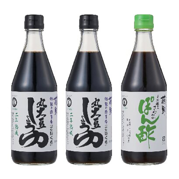 内容:二年熟成丸大豆醤油こいくち500ml×2、さわやかぽん酢500ml