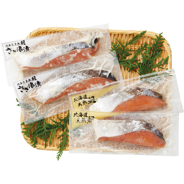 北海道産の天然秋鮭を、程よく塩加減に仕上げた切身と独自の塩糀に漬け風味良く仕上げたさざ浪漬けのセットです。