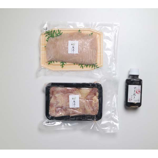 内容:阿波尾鶏もも切身200g、阿波尾鶏むねスライス200g、すき焼のたれ200g