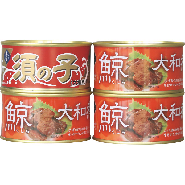 内容:鯨須の子大和煮170g×1、鯨大和煮170g×3(缶切り不要)