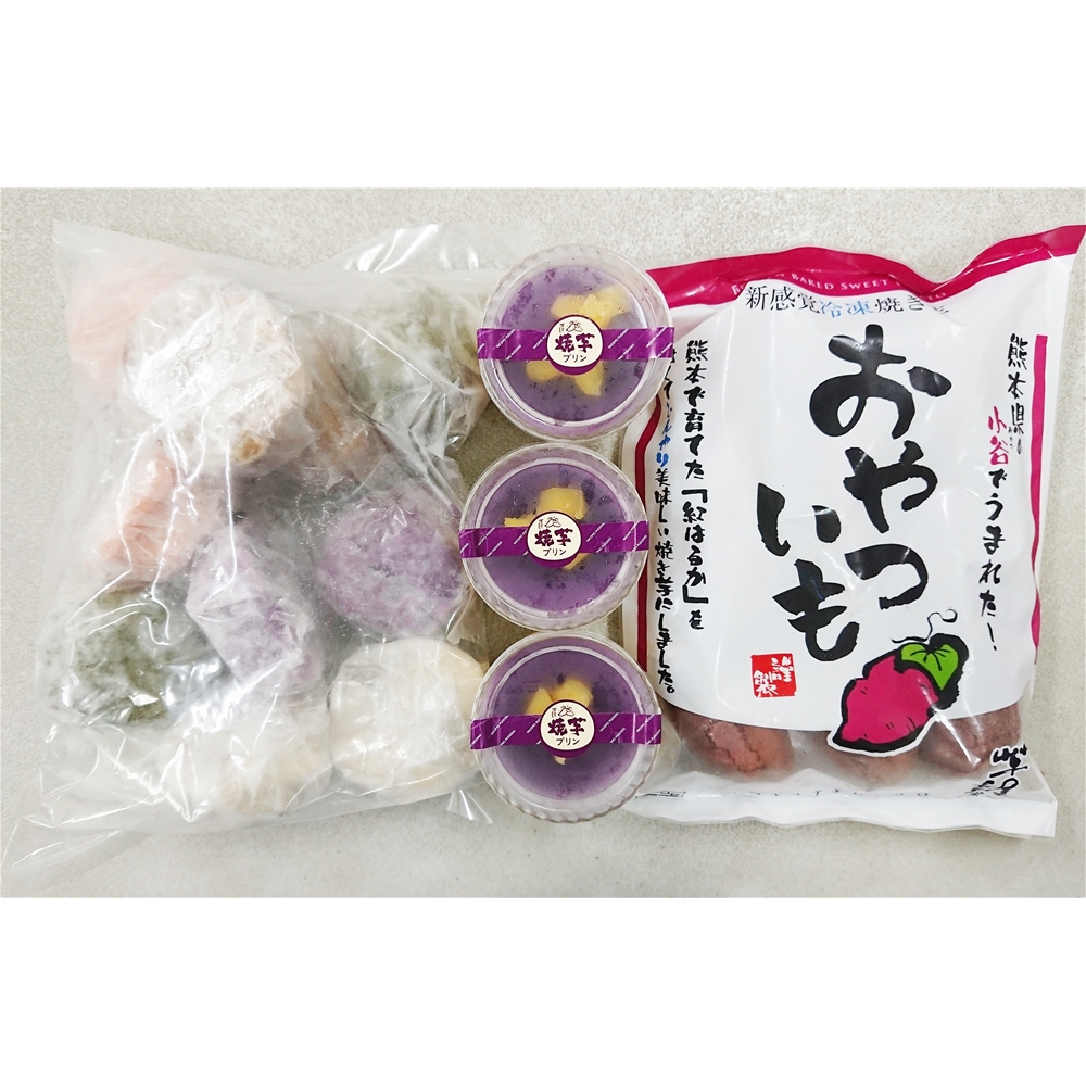 内容:いきなり団子、おやついも(新感覚冷凍焼き芋)500g×1袋、焼芋プリン120ml×3個