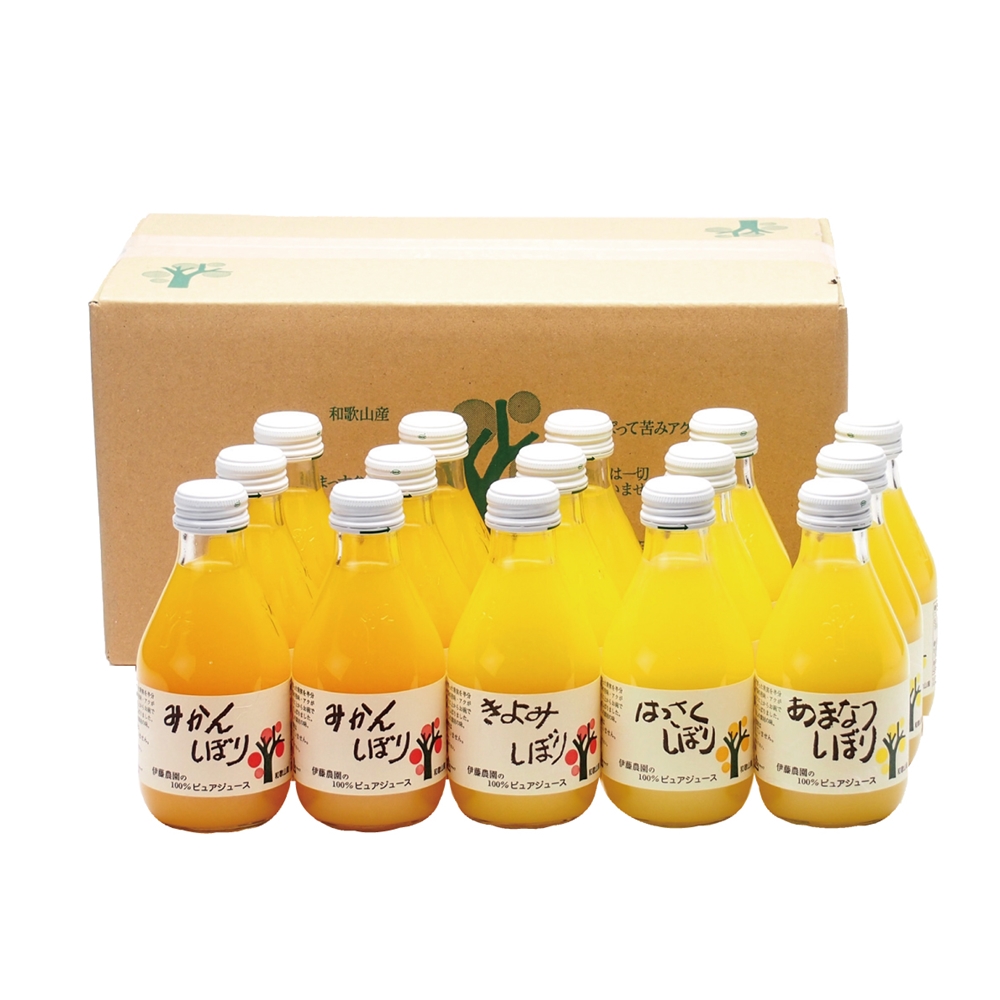 内容:100%ピュアジュース180ml(みかん×6本、きよみ・はっさく・あまなつ×各3本)