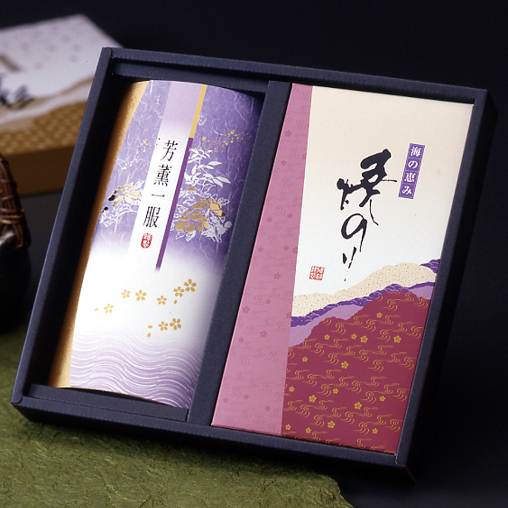 「静岡県牧之原産」のお茶、焼き海苔は愛知県産のものを使用しています。