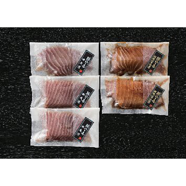 内容:鮪ハラモ幽庵漬100g×3、鮪ハラモ照焼醤油漬100g×2