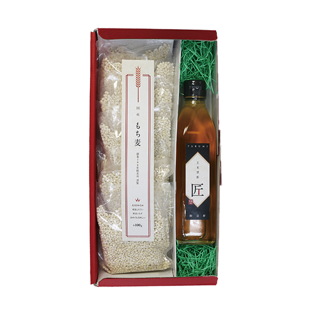 内容:黒酢(300ml)×1、もち麦(100g)×7