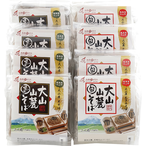 鳥取県大山町で収穫したそばをゆっくりと石臼挽きし、丁寧に練り上げた2種類のそばをセットにしました。甘皮を多く使った黒そばは香りがよく、そばの実の真ん中を使った白そばは甘みが感じられるおそばです。是非ざるそばでお召し上がりください。