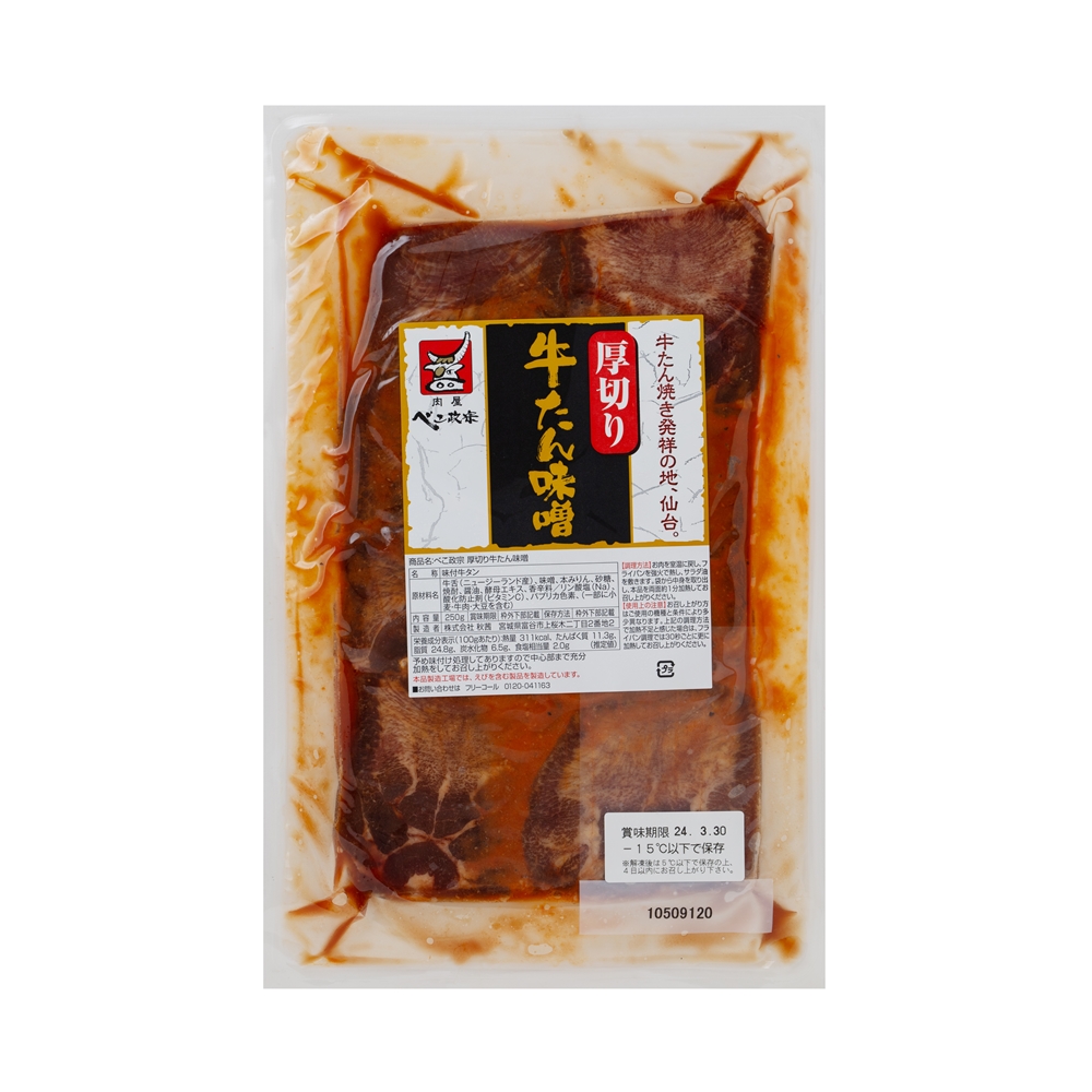 内容:厚切り牛タン塩250g×2、厚切り牛タン味噌250g×2