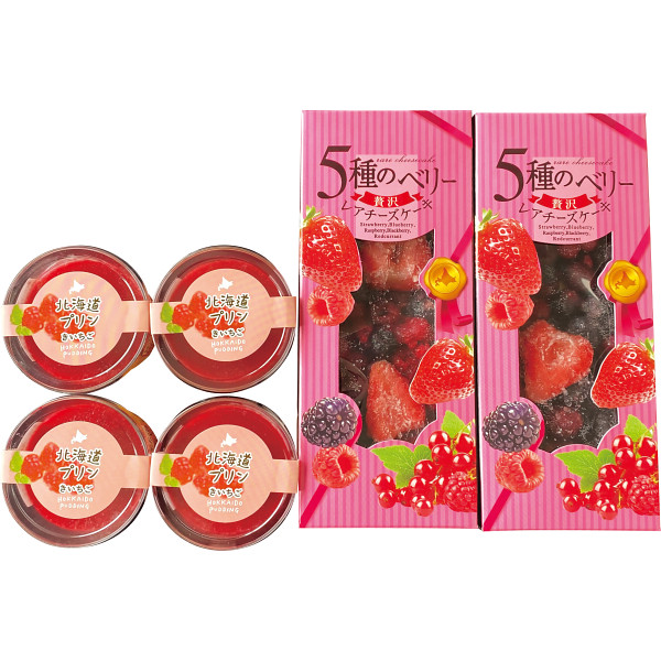 内容:5種のベリー贅沢レアチーズケーキ×2、木苺プリン100g×4