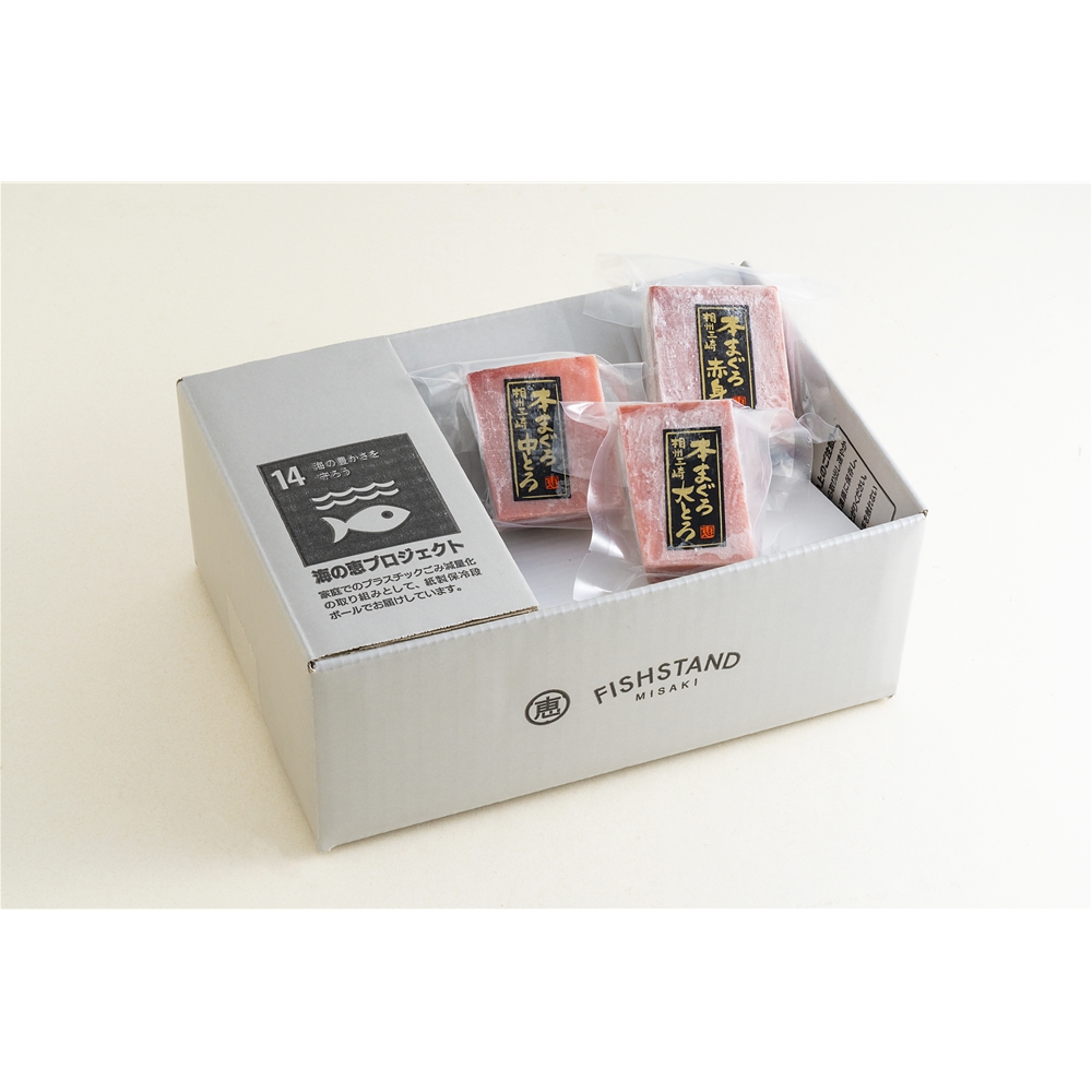 内容:大トロ100g×1、中トロ100g×1、赤身100g×1