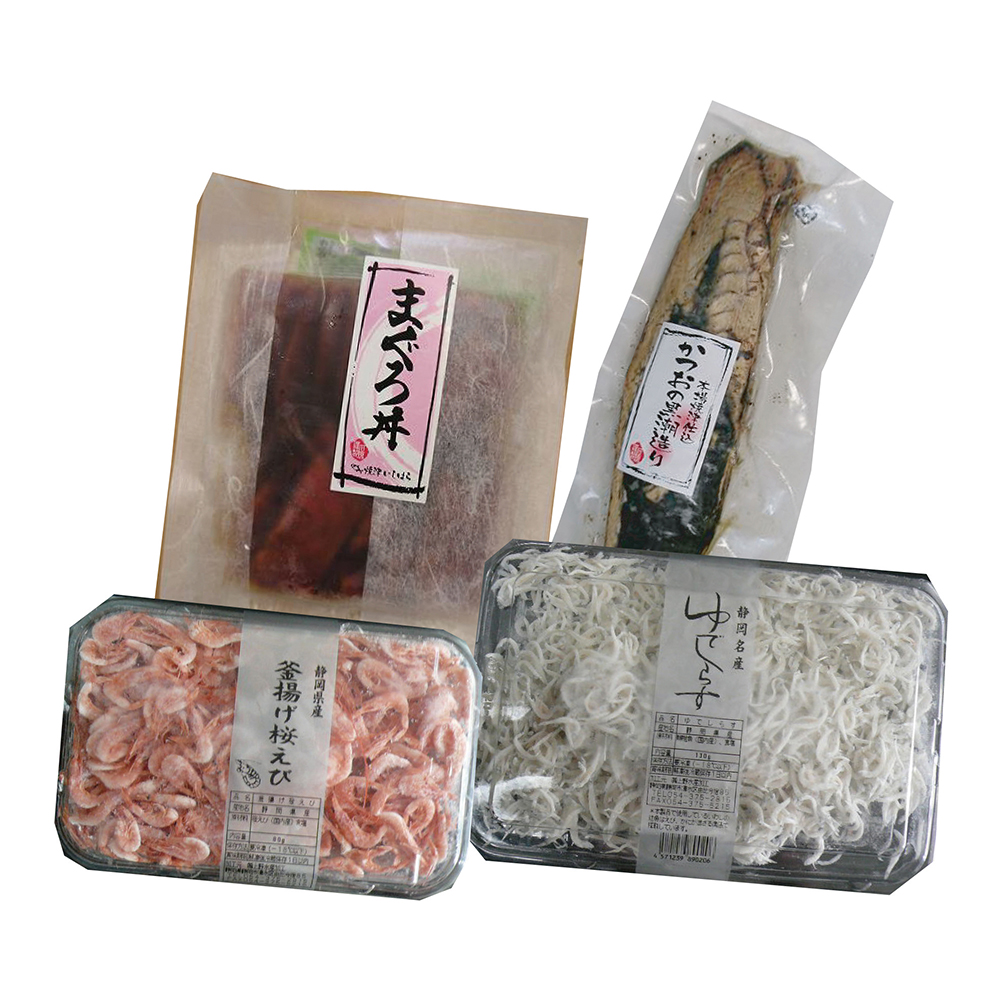 静岡県まぐろとかつおに桜えびしらすの詰合せです。お造り、丼物で美味しくいただけます。