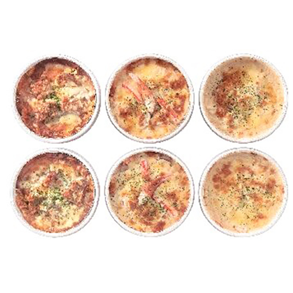 内容:境港産紅ズワイガニのバターライスドリア280g×2、境港産紅ズワイガニと北海道産帆立のクリーミーグラタン・焼きチーズビーフカレー各250g×2
