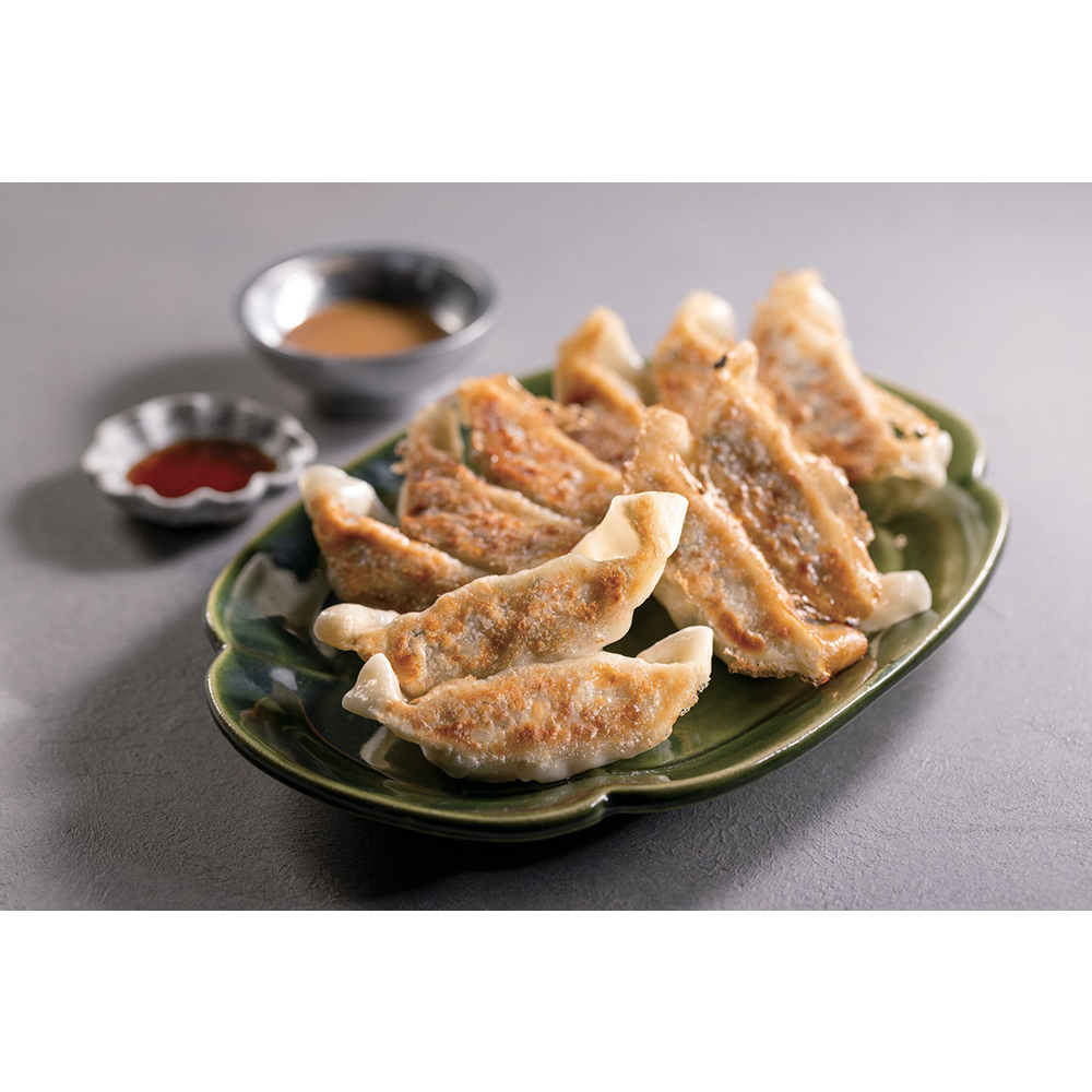 鹿児島県産黒毛和牛と黒豚の甘みと風味が広がる肉感たっぷりのジューシーな生餃子。醤油だれと味噌だれでお楽しみください。ディナーの一品におすすめです。
