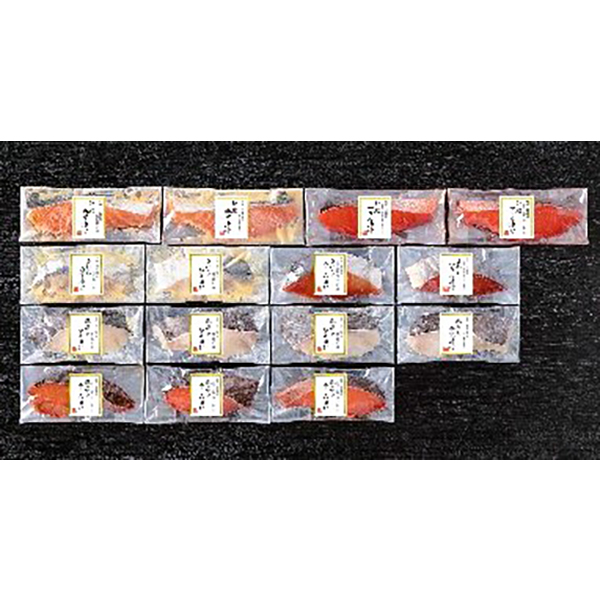 内容:銀ダラ西京漬70g×4、銀ダラ味醂漬70g×3、紅鮭西京漬70g×2、紅鮭味醂漬70g×2、サワラ西京漬70g×2、サワラ味醂漬70g×2