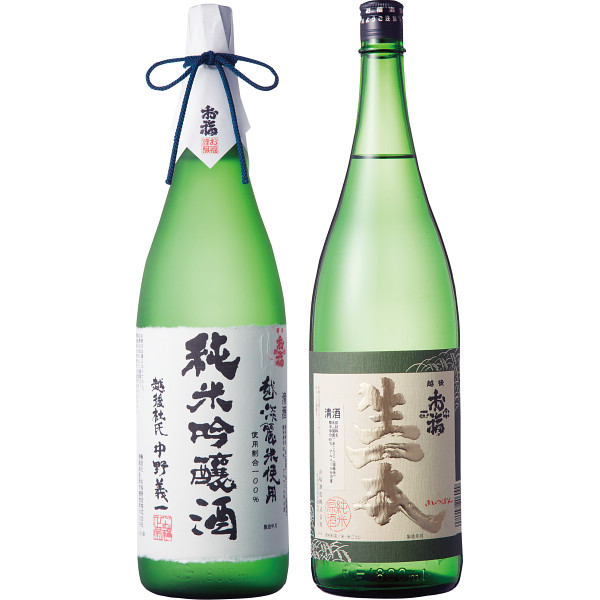 内容:越淡麗(純米吟醸、+5)・生一本(純米 原酒、+5)各1.8l×各1