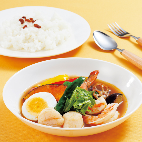 厳選した北海道の素材でつくりました。北海道の素材をベースとした味に、辛さが調節できるスパイスも付いて、北海道のおいしさが詰まった本格的なスープカレーです。お好みの具材やお肉を炒めて、スープカレーの素を加えて煮込むだけでご家庭でも手軽にお楽しみいただけます。