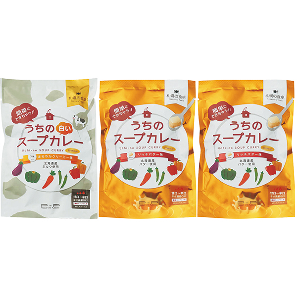 北海道の素材をベースとした味に、辛さが調節できるスパイスも付いて、北海道のおいしさが詰まった本格的なスープカレーです。お好みの具材やお肉を炒めて、スープカレーの素を加えて煮込むだけでご家庭でも手軽にお楽しみいただけます。