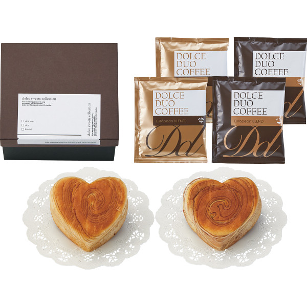 内容:ハートデニッシュ(メープル・チョコマーブル)×各1、ドリップコーヒー8g×4