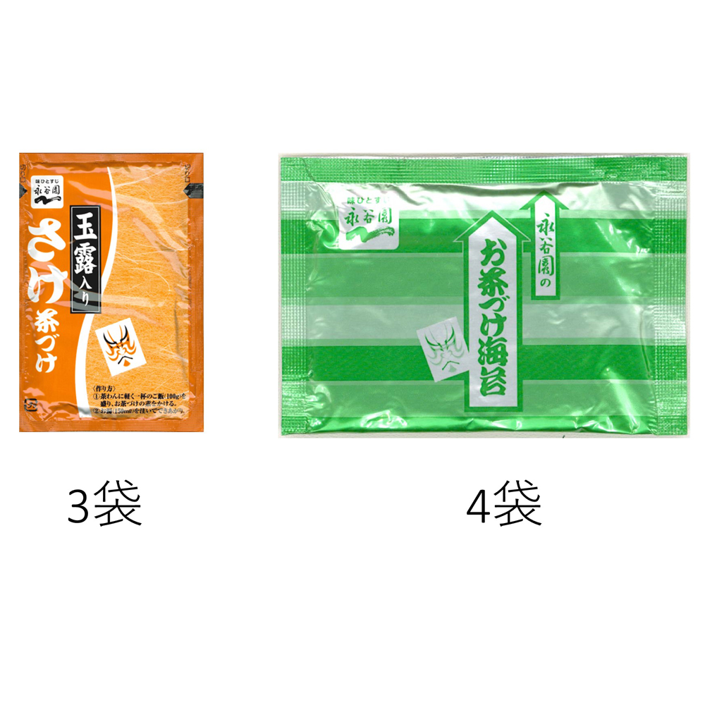 香り豊かな海苔茶漬けと、鮭のおいしさをそのままに手軽に楽しめる鮭茶漬けの永谷園お茶漬けセットです。