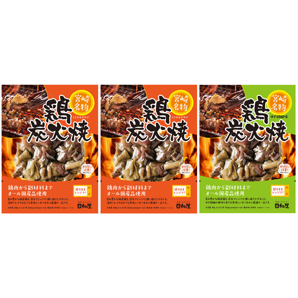 うまみ豊かな親鶏肉に味付けをし、鶏油が引火した強烈な炎で一気に焼き上げる本格炭火焼です。日向屋創業以来の、強い火力で焼き上げることで炭火焼の美味しさを最大限に引き出す製法のこだわりの一品。レンジや湯煎で調理してお召し上がりください。