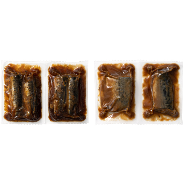 内容:いわし七味[2尾入(90g)×2連パック]・さば白味噌煮[1切入(70g)×2連パック]×各1