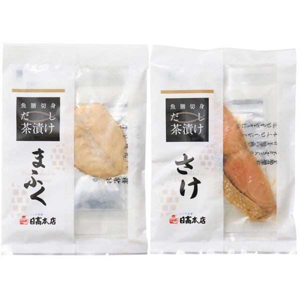 日高本店が創業より製造してきたふぐ茶漬。その伝統・製法を活かしレトルト加工された切り身は素材の味・食感そのままに、出汁つゆは料亭さながらの味に仕上がっただし茶漬けの素です。