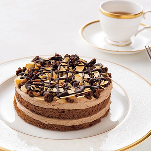 子供から大人まで楽しめるチョコレートケーキ。パリパリチョコとザクザクナッツで楽しい食感をお楽しみください。