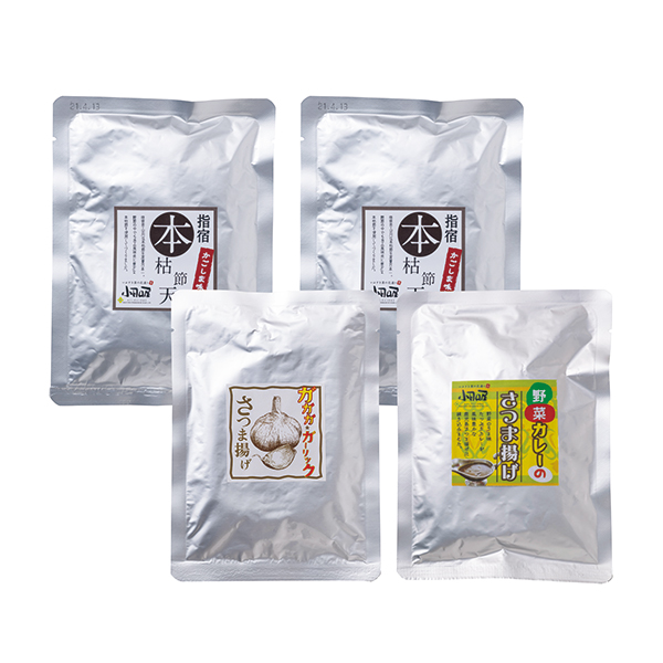 お酒のおつまみやおやつ、お弁当のおかずに便利な常温保存できるさつま揚げ。3種類それぞれの味わいをお楽しみください。