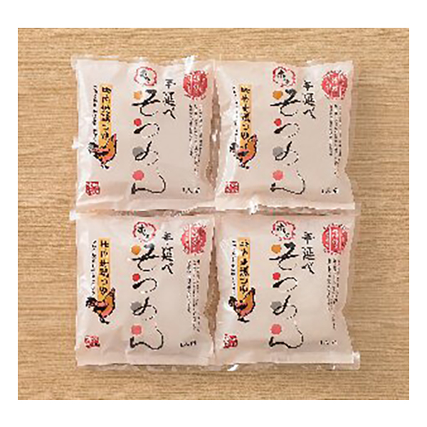 内容:即席手延べそうめん(麺60g・比内地鶏つゆ30ml・乾燥ねぎ・七味唐辛子)×4