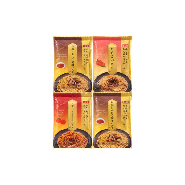 内容:和風にんにく醤油パスタ(めん100g、ソース30g)×2袋、トマトクリームパスタ(めん100g、ソース28g)×1袋、たらこパスタ(めん100g、ソース30g)×1袋